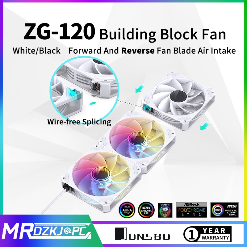 Jonsbo ZG120 ARGB Building Block Fan Black White Splicable Tandem